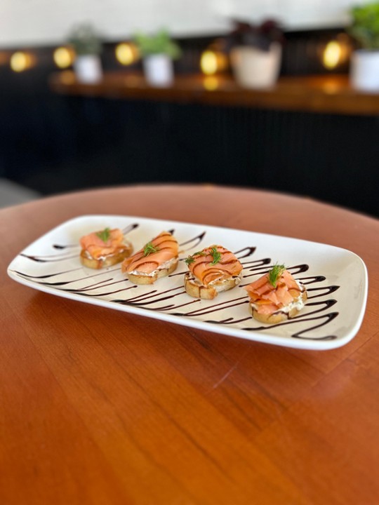 French Baguette, whipped Goat Cheese, Red onion, Capers, Smoked Salmon, fresh Dil & Seasonal Balsamic Glaze