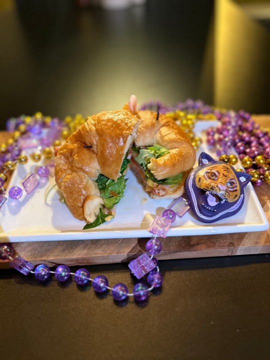 Smoked ham, smoked turkey, smoked gouda & American cheese, spring greens, tomato, Toasted Spread all on a grilled croissant & served with a side of Creolaise